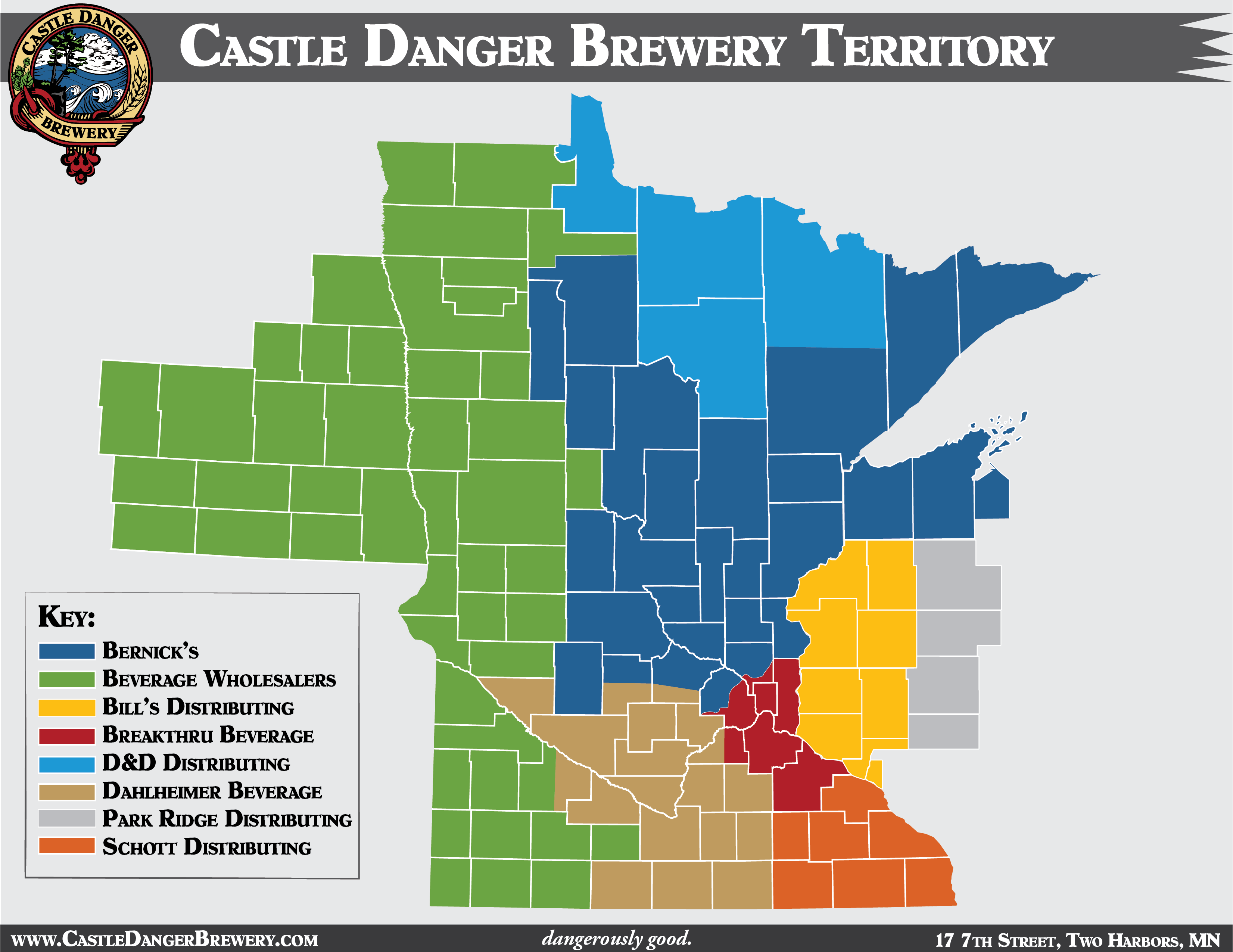 Castle Danger Brewery is distributed throughout Minnesota and select border territories in Wisconsin and North Dakota. If you’re interested in carrying our dangerously good beer in your establishment, please connect with the distributor in your area to get set up as an account.