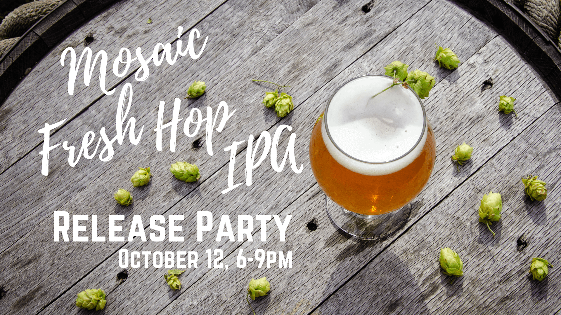 What you can look forward to; live music by John Cron (starting at 7 pm), prize drawings with items from our taproom, El Oasis del Norte, and Louise’s Place pop-up shop. We’re also offering $1 off tulips and discounted growlers of Mosaic Fresh Hop IPA all day. The first drawing will be at 6:30 pm and will go every half hour until 9 pm – must purchase a tulip of Mosaic Fresh Hop IPA to enter the drawing, and must be present to win. Mark your calendars!!