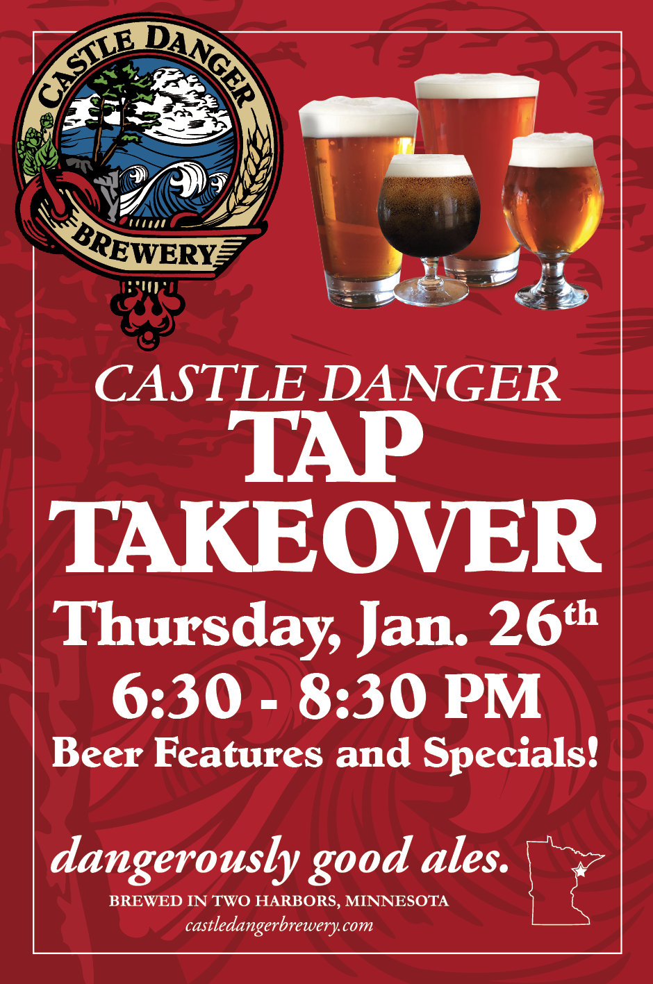 We’ll be at Cast Iron for a Tap Takeover on January 26, from 6:30-8:30pm pouring dangerously good ales. Stop by and drink some beer with us!
