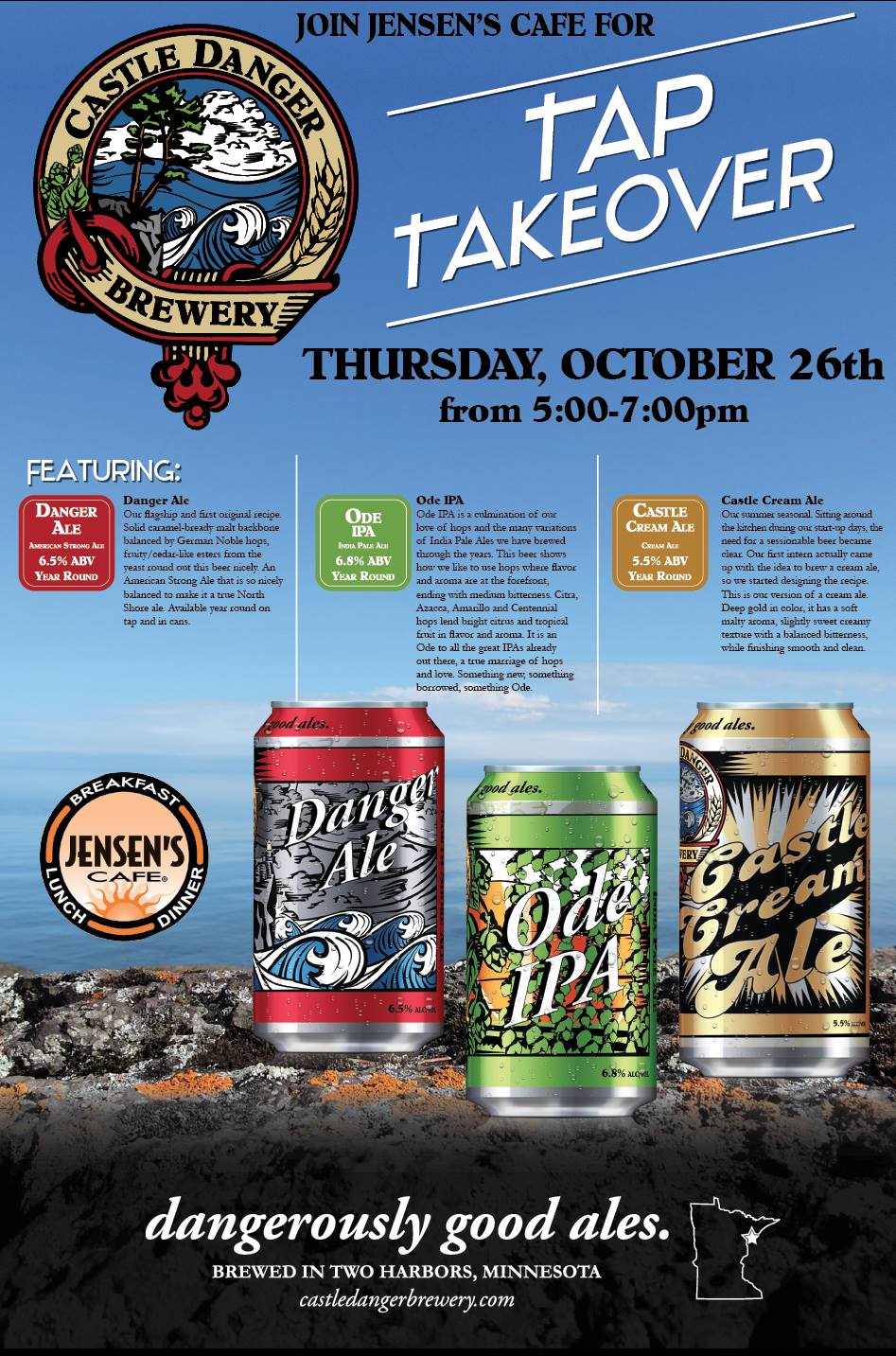 Join us at Jensen’s Cafe in Burnsville for their very first Castle Danger feature event. We’ll be pouring Danger Ale, Ode IPA, and Castle Cream Ale.