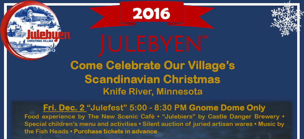 On Friday, December 2nd, join us at the Knife River Julebyen! We’ll be providing the “Julebiers” for purchase at the Gnome Dome Julefest from 5:00-8:30pm. Special children’s menu and activities, silent auction of juried artisan wares, music by the Fish Heads, and many more holiday activities will be happening. Purchase your tickets ahead of time – more information at www.Julebyen.us.
