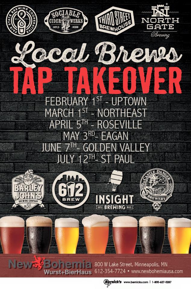 Castle Danger Brewery will be part of the Local Brews Tap Takeover at New Bohemia locations around the Twin Cities. Like drinking local? Mark your calendars and make your way to New Boh!