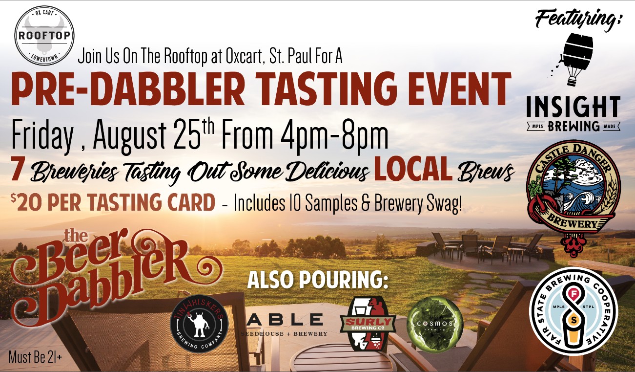 Join us at the Ox Cart Ale House Friday, August 25th to ring in the 2017 Summer Dabbler. Seven craft breweries pouring some delicious local beers! $20 per tasting card, we’ll see you there.