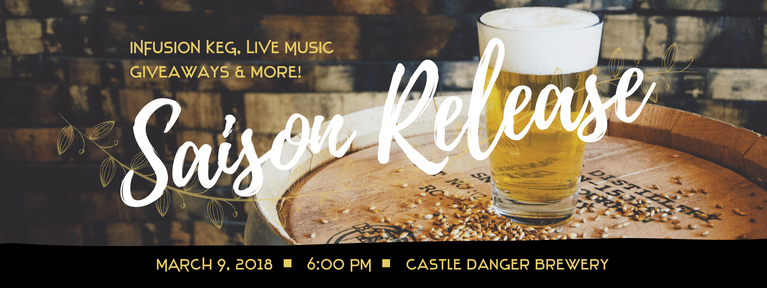 Join us as we release the second Taproom Series beer of the year – Saison! This is our take on the popular style, and we’re making it dangerously good. Be the first to try it on March 9th. We are tapping a specialty infusion keg of Saison at 6pm, with live music to follow from 7-9pm. Throughout the night we will be doing prize drawings in which you can win free beer and some awesome Castle Danger swag. Mark your calendars! We’ll see you on March 9th.