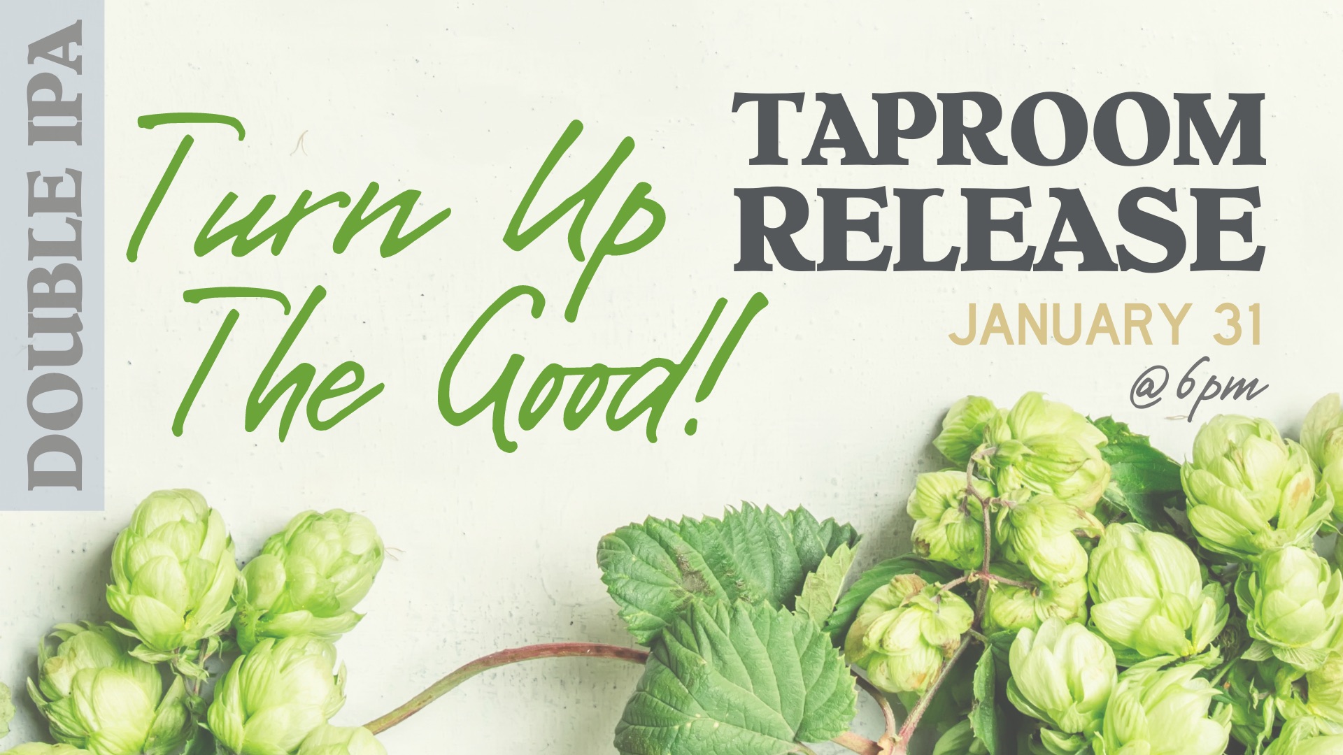 Join us for the second Taproom Series release of 2020. Turn Up the Good! is brewed by Pat McMahon. It’s a bold, juicy, Nor Coast style double IPA. This beer isn’t overly bitter and is pleasantly balanced for the style.