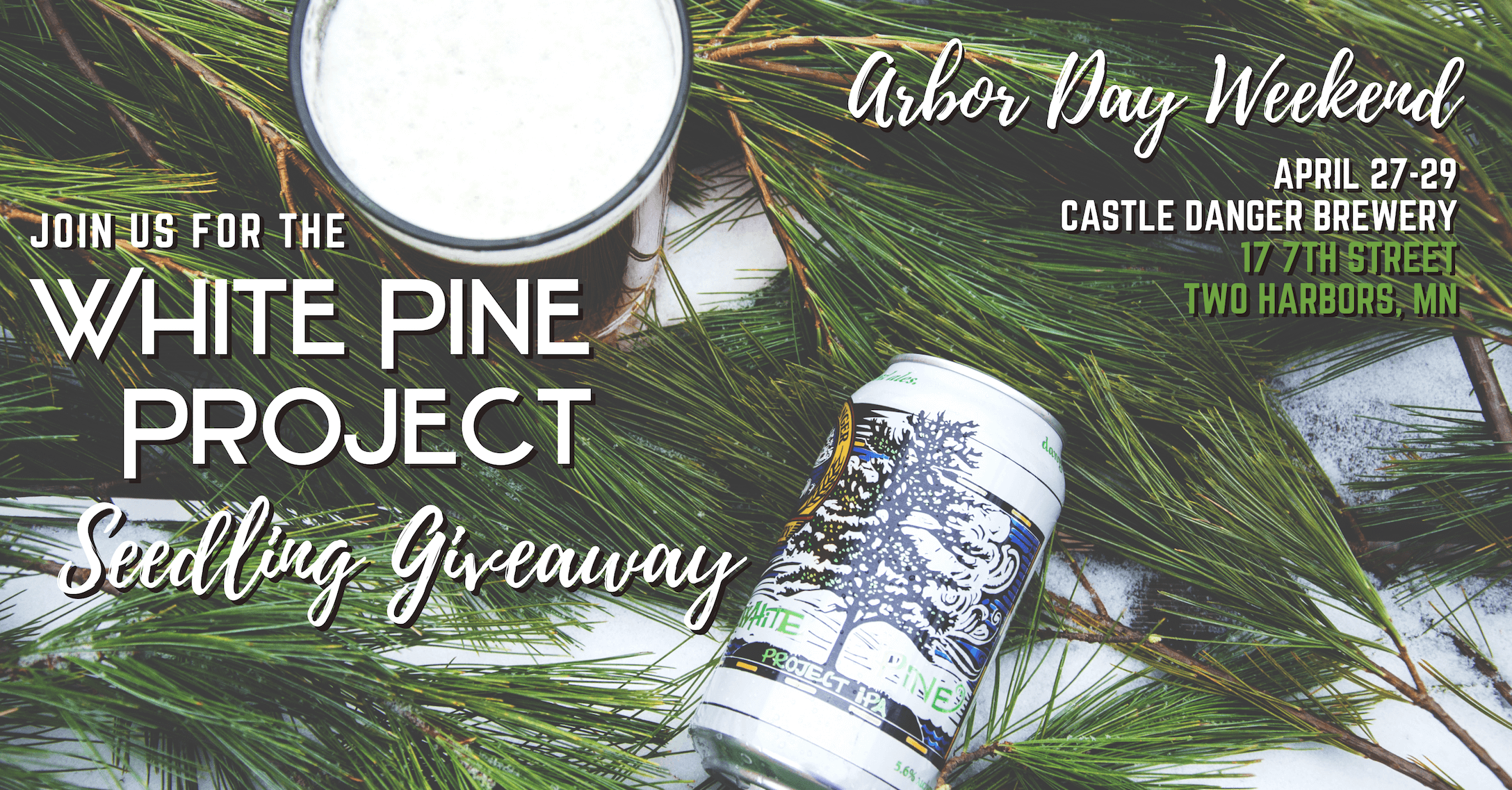 Stop in at the taproom during noon-7pm on April 27-29th to pick up your white pine seedling. The seedlings are free and available without a purchase of Castle Danger beer. Planting and care instructions will be included with each seedling, and we will have white pine experts here to answer any questions you may have.