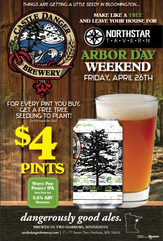 NorthStar Tavern 5101 98th Street West, Bloomington, MN, United StatesJoin us at NorthStar Tavern on Friday, April 26th for a White Pine Project IPA tap feature. Pints of White Pine Project IPA are only $4. They will also be handing out white pine seedlings for every pint of white pine sold.