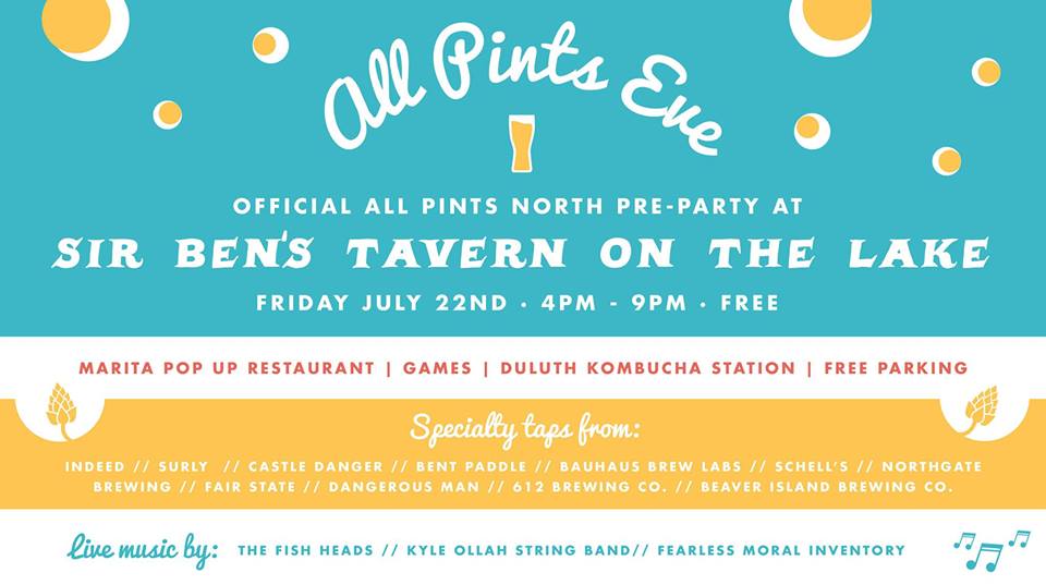 Sir Benedict's Tavern on the Lake 805 E Superior St, Duluth, MN, United StatesJoin us at the annual All Pints North Pre-Party at Sir Ben's Tavern on the Lake. Come and have a dangerously good ale with us in the name of local craft beer! We'll see you there.